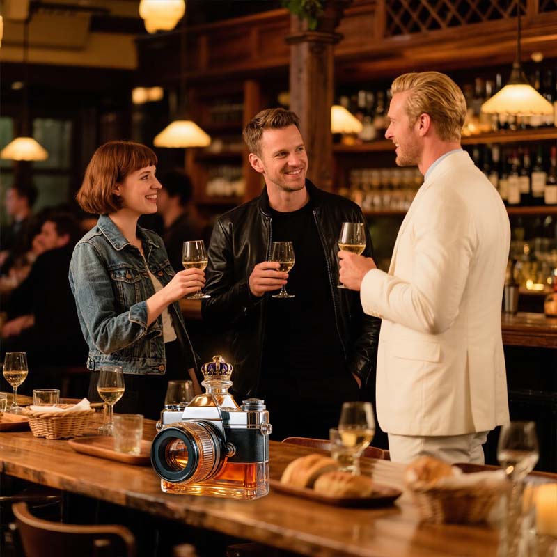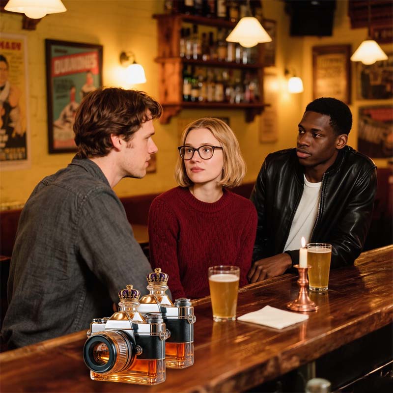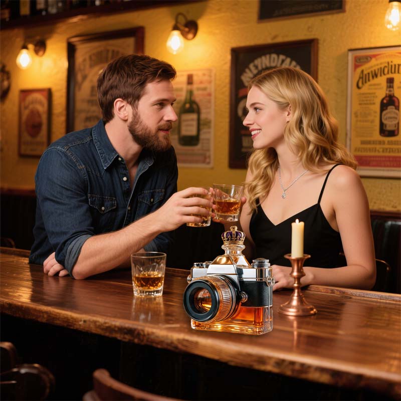 Pour in style with this camera-inspired glass decanter that combines artistry and functionality. Designed for collectors, photographers, and enthusiasts alike, it brings a unique statement to your bar setup or home décor.