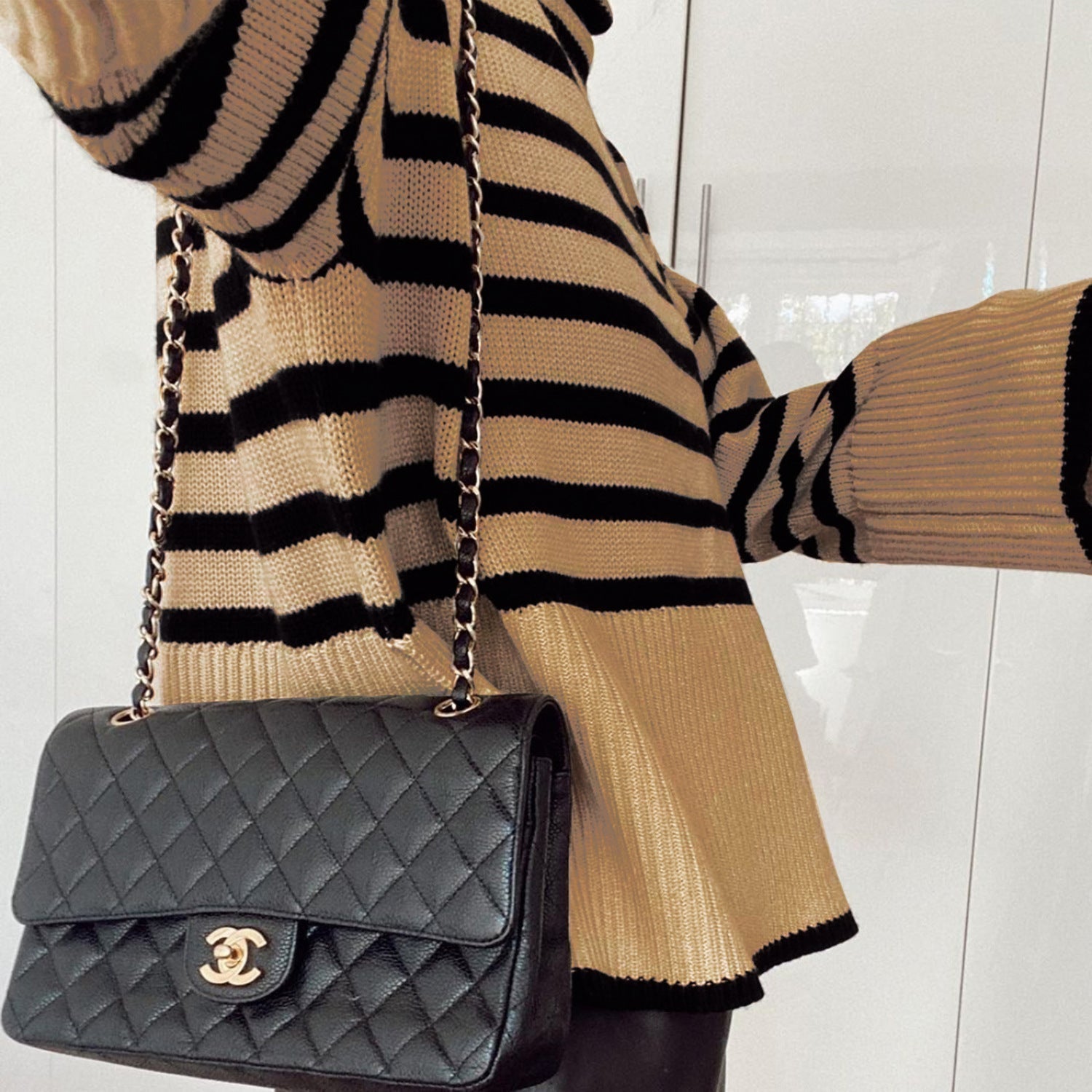 This casual sweater blends timeless stripes with a relaxed fit, offering an easy yet refined look for any occasion. The high neckline and wide sleeves create a chic silhouette that transitions seamlessly from work to weekends.